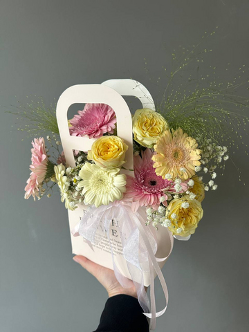 Утонченное сочетание жизнерадостной герберы, романтичной розы и воздушной гипсофилы, создающее легкое, элегантное и светлое настроение. Она подойдет для любого праздника или как способ выразить симпатию, даря ощущение весеннего настроения и утонченной красоты.