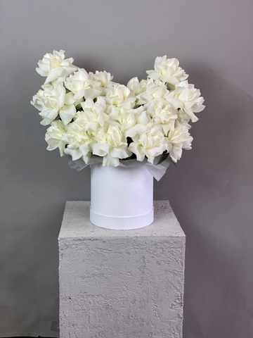 Состав: 25 французских роз, флористическая пена, шляпная коробка