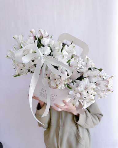 Композиция из стойких белых альстромерий — это символ чистоты, нежности и долгих отношений. Этот изящный букет подойдет как подарок для выражения благодарности и уважения, а также для тех, кто ценит стойкость и элегантность. Он станет украшением любого праздника, наполнив пространство светом и гармонией.