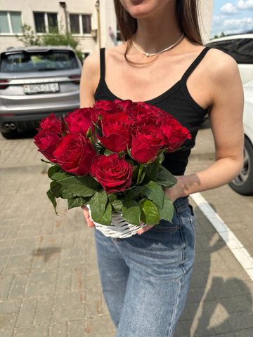 Состав: 15 кенийских роз, корзина, флористическая пена
