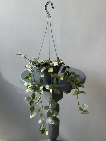 Хойя Эскимо — очарование в вашем доме! Уникальные листья с серебристыми пятнами и пыльцой придадут вашему интерьеру неповторимый шарм. В домашних условиях хойя может выращиваться как ампельное растение, свисая каскадом лиан, либо оформляться на опоре, поднимаясь вверх и формируя эффектный «зеленый занавес». Сочетание относительной неприхотливости, красоты вегетативной массы и роскошных цветочных «зонтиков» делает хойю одним из самых желанных комнатных растений.