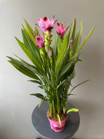 Куркуме нужен яркий, рассеянный свет. Поливайте обильно теплой, отстоянной водой, поддерживая почву постоянно умеренно влажной, но не допуская застоя воды. Регулярно опрыскивайте листья теплой водой для поддержания высокой влажности воздуха. Избегайте любых сквозняков и резких перепадов температур. Куркума цветет сезонно, обычно с середины лета до середины осени (с июля по октябрь), образуя яркие, конусообразные прицветники, после чего растение переходит в период покоя. Цветение каждого отдельного соцветия длится около 10 недель, и после его окончания растение необходимо обрезать, чтобы подготовить к зиме.