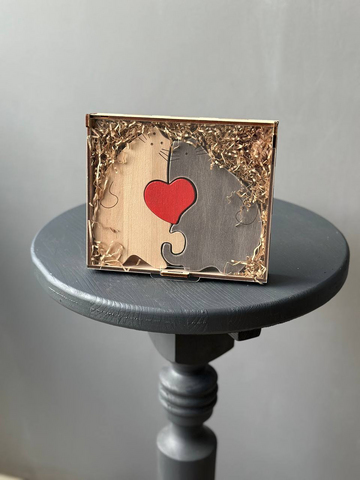 Деревянный пазл Любовь - идеальное дополнение к букету, чтобы выразить Ваши чувства! Этот сувенир создаст тёплую атмосферу тепла. Каждая деталь выполнена из качественного дерева и украшена милыми иллюстрациями котиков, символизирующих заботу и любовь. Подарите незабываемые моменты на долгую память!